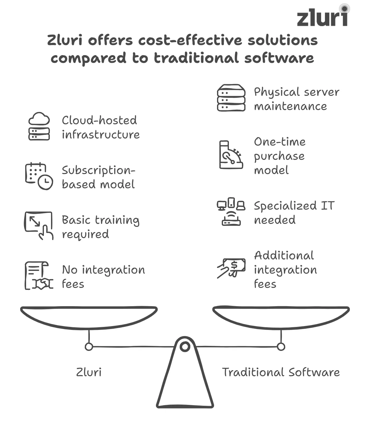 - You don’t need to hire specialized IT professionals or consultants to install, manage, and troubleshoot the software. With basic training, your existing team can manage it easily.